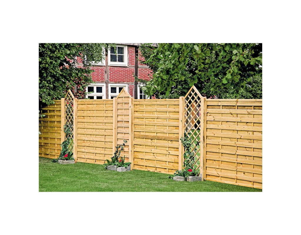 Sind Sie auf der Suche nach optisch ansprechenden Rankgittern oder eindrucksvollen Gestaltungselementen für Ihren Traumgarten? Bei der Maxi-Zaun Serie von T&J bietet sich Ihnen alles, was das Gärtnerherz begehrt. Verleihen Sie Ihrem Garten mit den T&J Maxi-Zäunen einen ganz besonderen, individuellen Flair und machen Sie ihn zu etwas besonderem. Durch die überaus große Auswahl an verschiedensten Formen und Größen der Zaunelemente aus qualitativ hochwertigen Hölzern sind Ihrer Kreativität keine Grenzen gesetzt. Egal ob Maxi Doppelbögen oder diagonale Zaunelemente - T&J Maxi-Zäune verfügen über stabile Rahmen und strukturgehobelte Lamellen mit sowohl optisch als auch qualitativ aufwertenden Edelstahlverschraubungen und gezapften Eck-Rahmenkonstruktionen. Alle Hölzer sind kesseldruckimprägniert. Ein besonderer Effekt dieses Verfahrens ist die damit einhergehende Grünfärbung aller zur Auswahl stehenden Holzarten, welche den Zaun als Element des Gartens noch mehr mit der Natur verschmelzen lässt. Vorbei ist die Zeit der immerzu gleich aussehenden Gartenabgrenzungen. Der moderne Garten besticht bereits an der Grundstücksgrenze durch Einzigartigkeit.