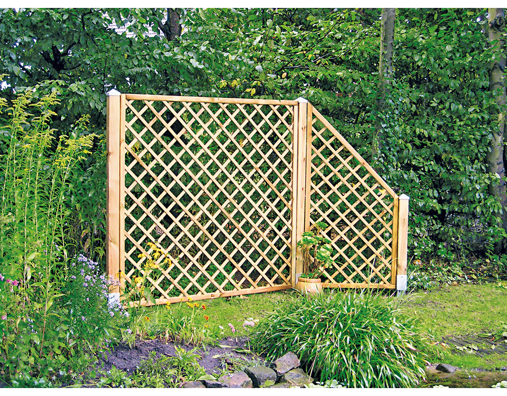 Weiterführende Links zu "Diagonal-Rankzaun 60x180cm MW 10x10cm Rahmen 45/45mm kdi grün Leisten 12x30mm genagelt"